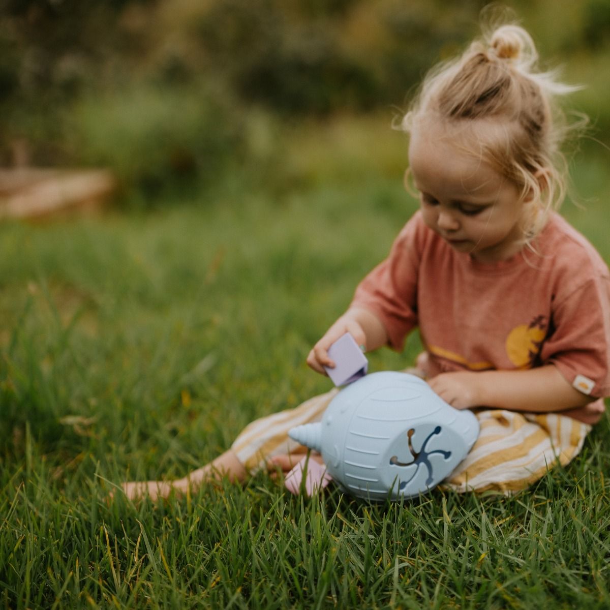 An educational playroom classic reimagined Jellystone style! Our magical narwhal is ready to play. Bubs and toddlers can discover shapes and develop fine motor skills as they sort each piece through the corresponding openings. With our specially designed base, the blocks hold within the narwhal but can be easily accessed when it is time to play again.