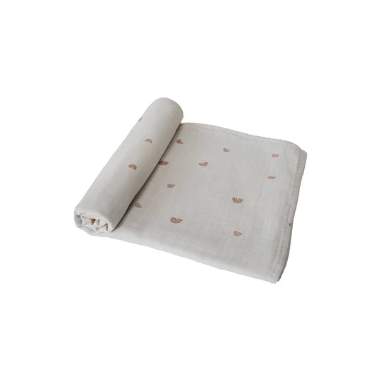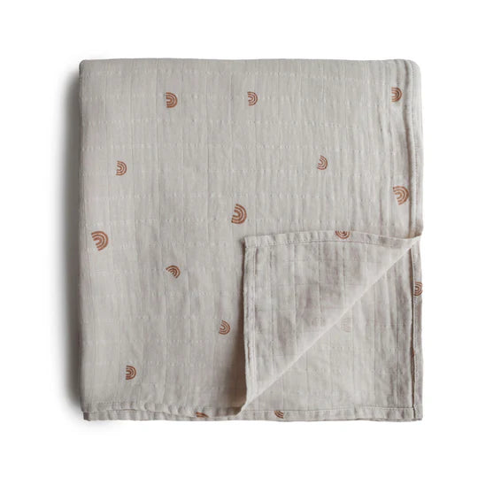 Mushie Organic Cotton Muslin Swaddle Blanket Rainbow