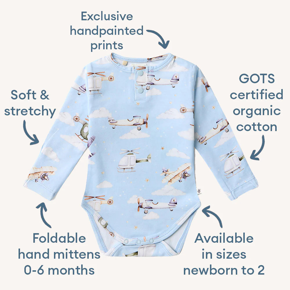 Snuggle Hunny Kids Taking Flight Long Sleeve Organic Bodysuit
