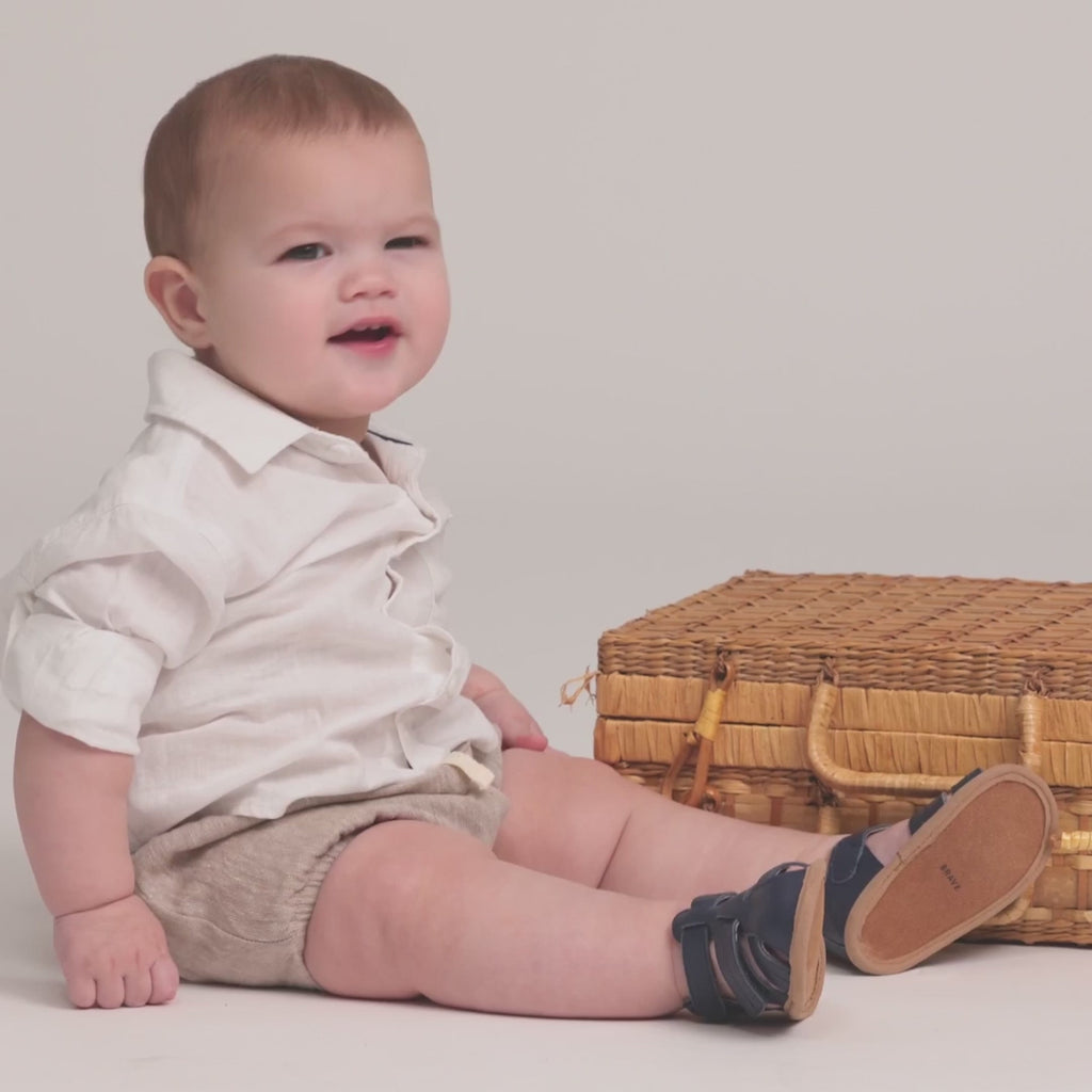 Levi is the cutest summer boys sandal to hit the streets this season. Featuring a padded contrast collar for equal parts comfort and style, Levi also has two fully adjustable Velcro straps for a custom fit on little wriggly feet. The closed toe and heel provide an extra layer of protection for active boys.